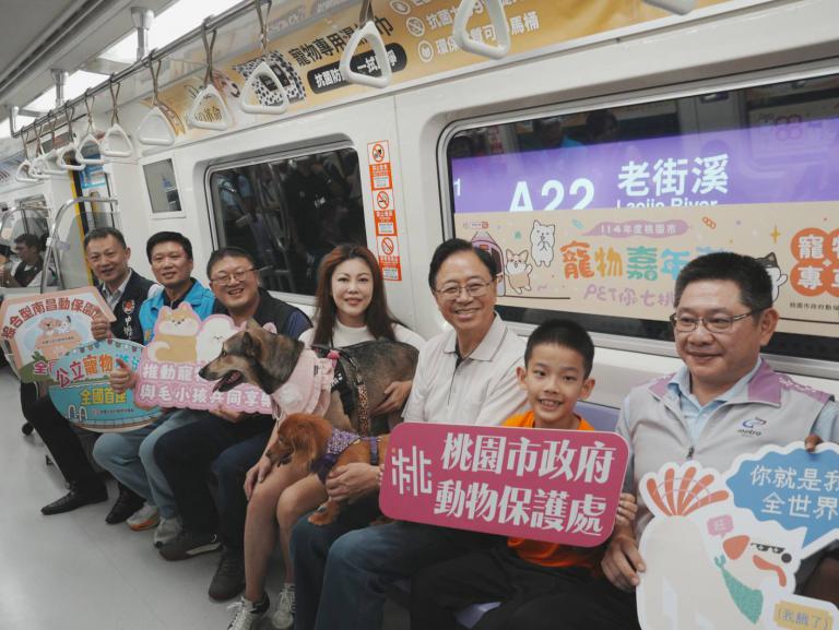 ▲張市長和毛小孩一同搭乘桃園機場捷運。(…