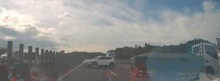 休旅車在國道與小貨車擦撞後打橫,後方一…