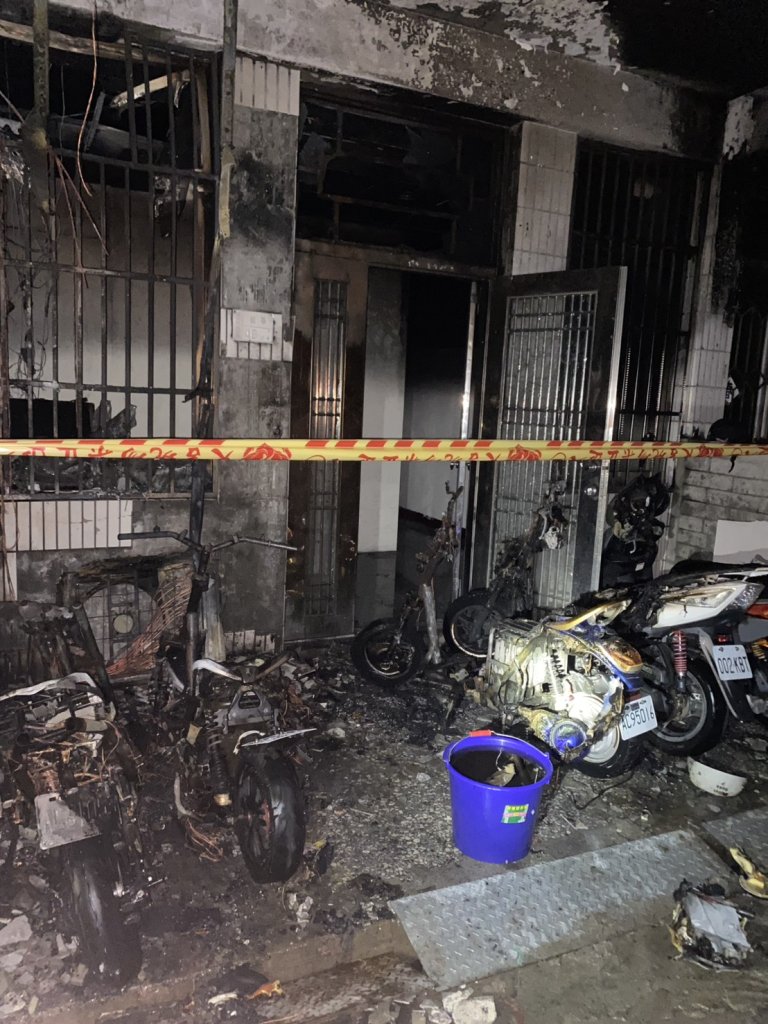 苗栗民宅火警燒毀5輛機車。翻攝畫面 【…