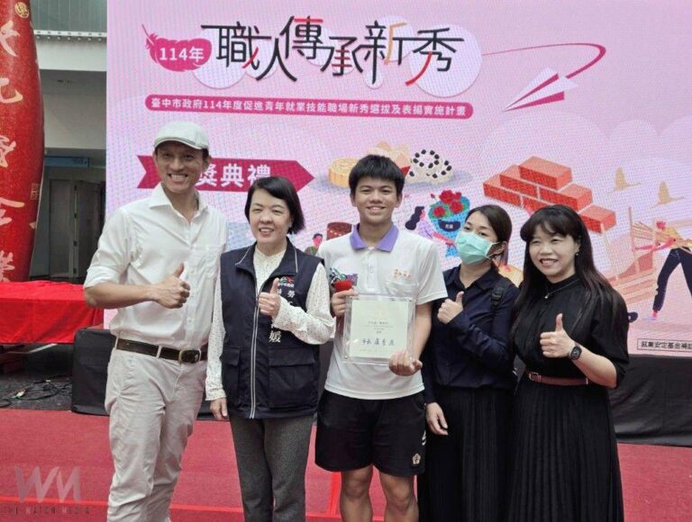 獲獎職人新秀與勞工局長林淑媛(左2)合影。…