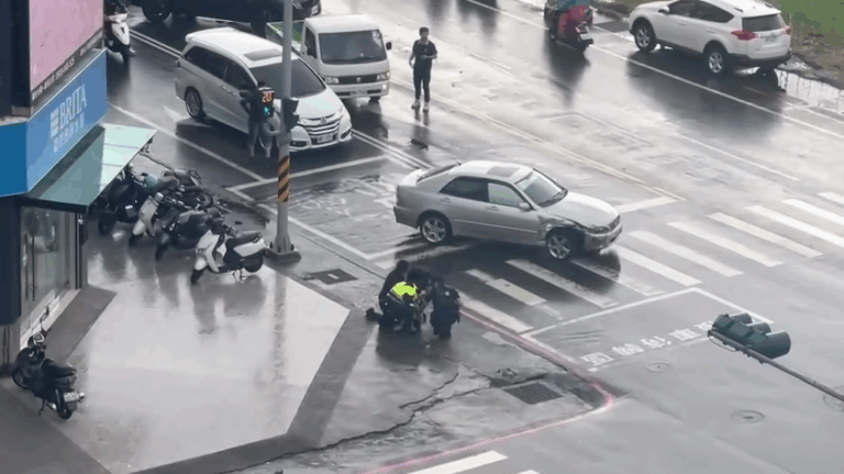 民權東路驚險一摔!女騎士變換車道急煞翻…