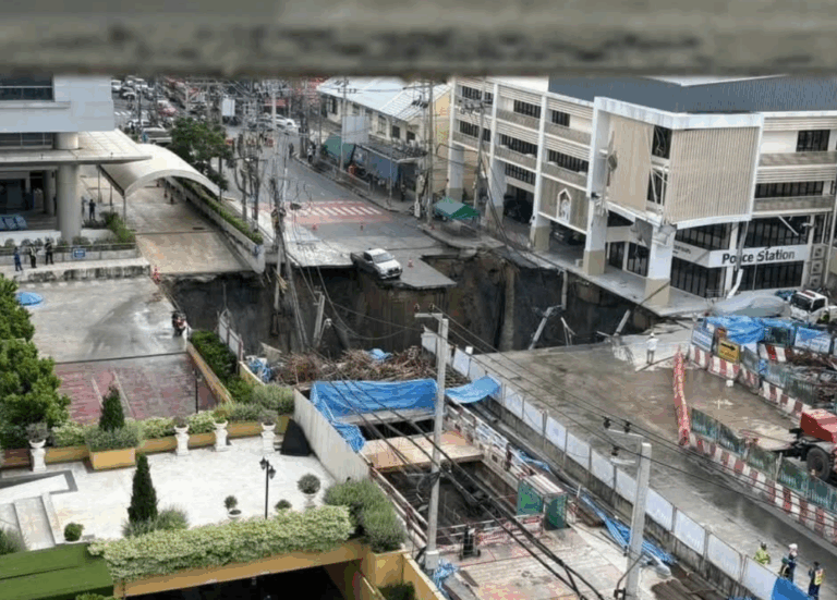曼谷鬧區驚現50公尺深天坑!路面兩度崩塌…