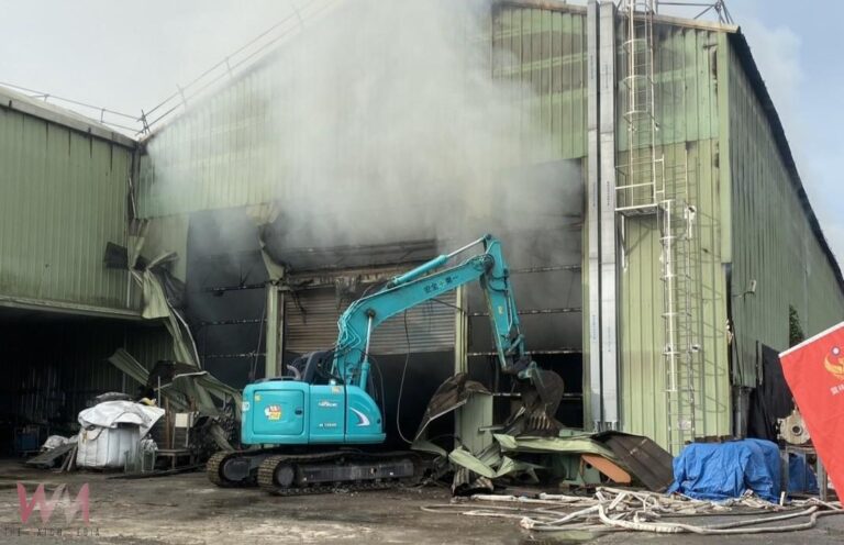 該廠房為木屑製造工廠,內部堆放大量木屑…