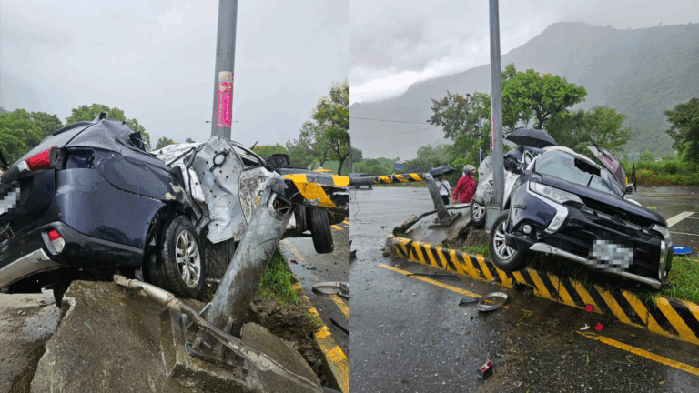 ▲花蓮警車載通緝犯失控!自撞分隔島 37歲…