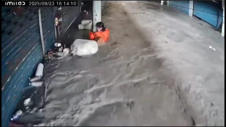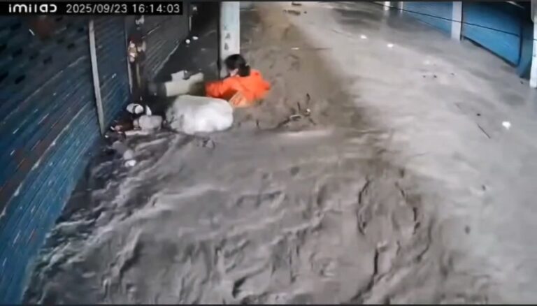 記者樊德惠/綜合報導 婦人緊抱著柱子,深…