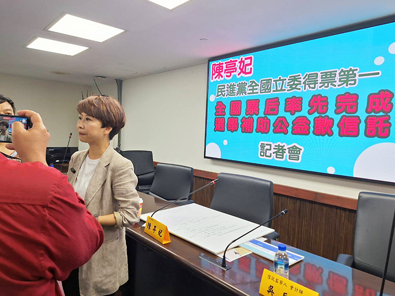 ▲陳亭妃全國票后率先完成選舉補助款公益信…