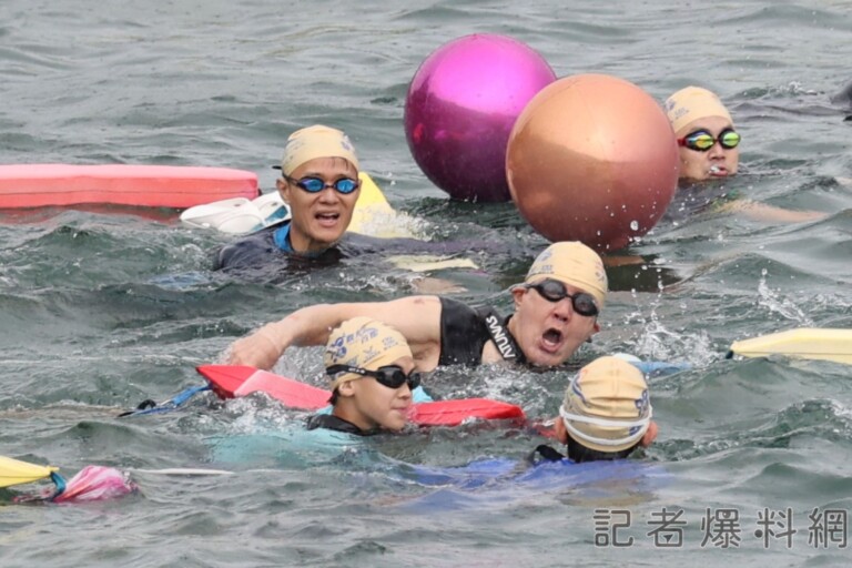 ▲前總統馬英九今年第11度挑戰泳渡日月潭,…