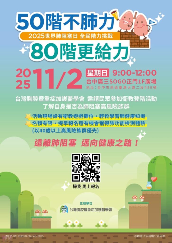 響應世界肺阻塞日 「全民階力挑戰」台中廣三SOGO11/2登場
