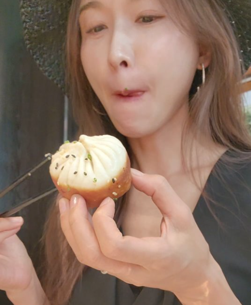 林志玲吃一顆生煎包分了十幾口。(圖/翻攝林志玲IG)