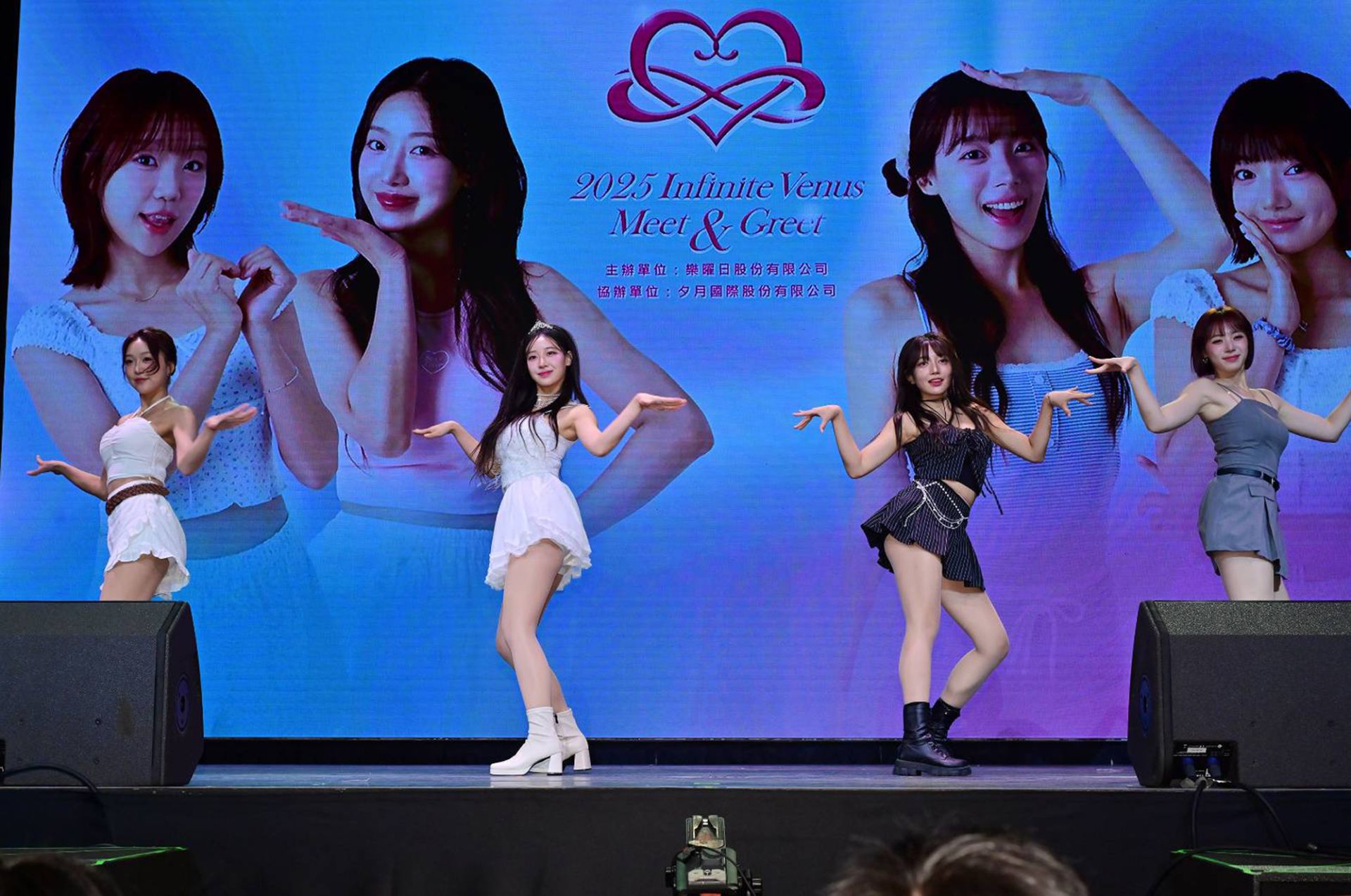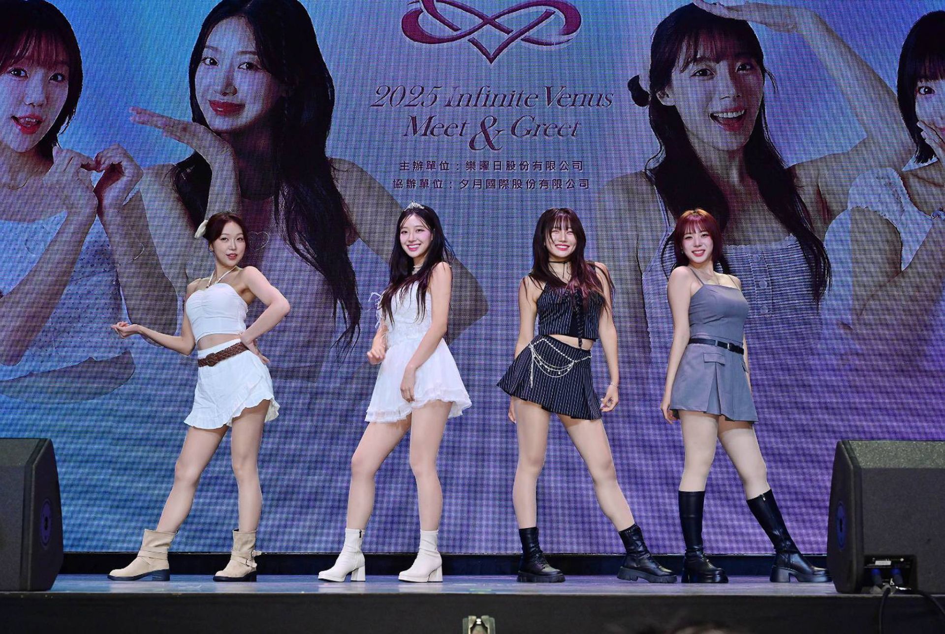 【賴傳媒 王傳文/綜合報導】韓流「啦啦隊女神團」河智媛、禹洙漢、朴昭映與李珠熙攜手舉辦的「2025 INFINITE VENUS MEET & GREET 無限女神 VIP見面會」,一天連兩場近距離會粉絲,共聚集近千名粉絲前往朝聖,行程滿檔的她們幾乎馬不停蹄,一度讓大家既是心疼又是擔心她們的體力負荷,但四位女神拍胸補貼心表示,平常工作量就很大,也會靠保養、飲食與充足休息來調養身體,因此久而久之便也適應這樣的生活狀態,「即使再忙,我們也都捨不得看到任何的粉絲失望,請大家放心,我們狀態都超好,一天兩場沒問題喔!」