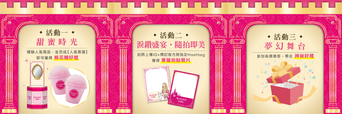 歡慶品牌邁入20週年,日本全眼妝專家 KISSME花漾美姬 將於 10月25日(六)至10月26日(日)於台北信義區 ATT 4 FUN前廣場 盛大舉辦期間限定快閃活動「美之王國・淚鑽盛宴」。現場將打造充滿夢幻氛圍的公主舞台,帶來最完整的眼妝體驗、限定好禮與互動驚喜,邀請所有女孩一起走進KISSME花漾美姬華麗的美之王國,展開一場閃耀動人的週末慶典。
