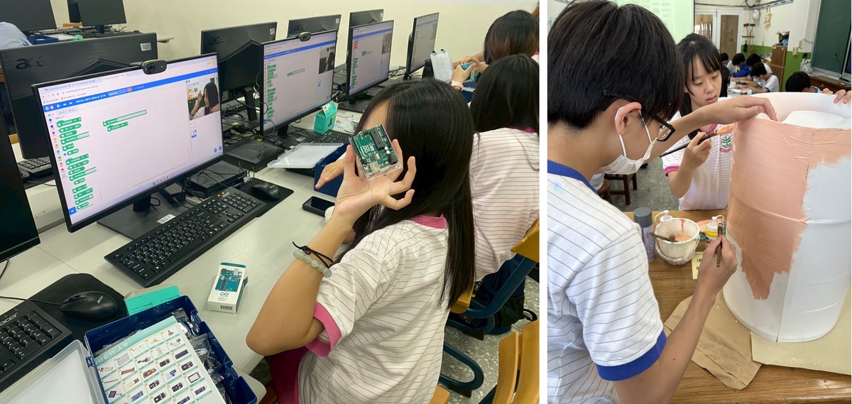 - 在資訊與生活科技課程中,學生實踐模組化程式設計,應用 AI 辨識與數據分析的概念,開發「智慧回收載體」的原型設計。