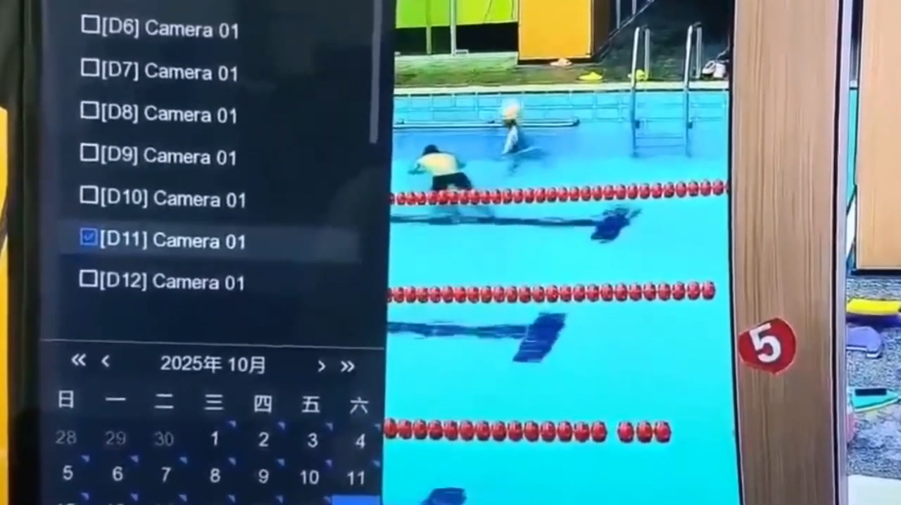 根據陸媒報導,監視器顯示,10月18日18時34分21秒,一男子以頭和雙臂向下的姿勢,從池沿跳入泳池中,很快他就站了起來,並彎腰趴在水面上,動作僵硬,旁邊一個小孩疑似在呼喚他,沒有回應。該處泳池邊的柱子上,有標牌注明“淺水區 1.1公尺”。