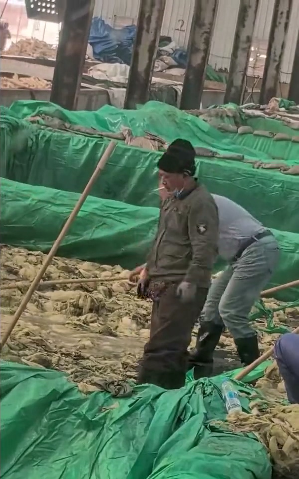 中國遼寧網友,在網路上分享影片,拍攝於一家酸菜企業的生產車間。一男子站在酸菜池中用鋼叉將酸菜翻動並鏟至一旁,男子在工作過程中全程抽煙,並在酸菜池中隨口亂吐。