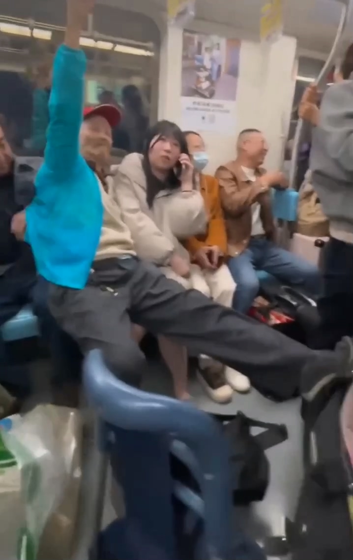 中國上海地鐵9號線上,發生一名老人偏要坐在一名年輕女子腿上的離譜事件。