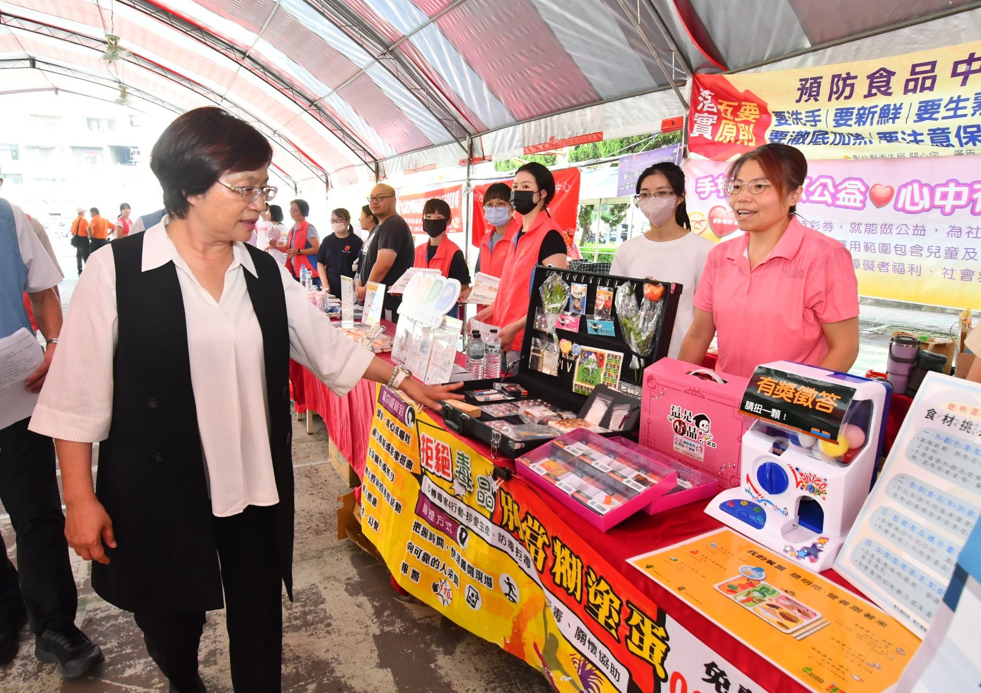 圖說:王惠美到各公益團體的攤位慰問,並感謝大家的努力