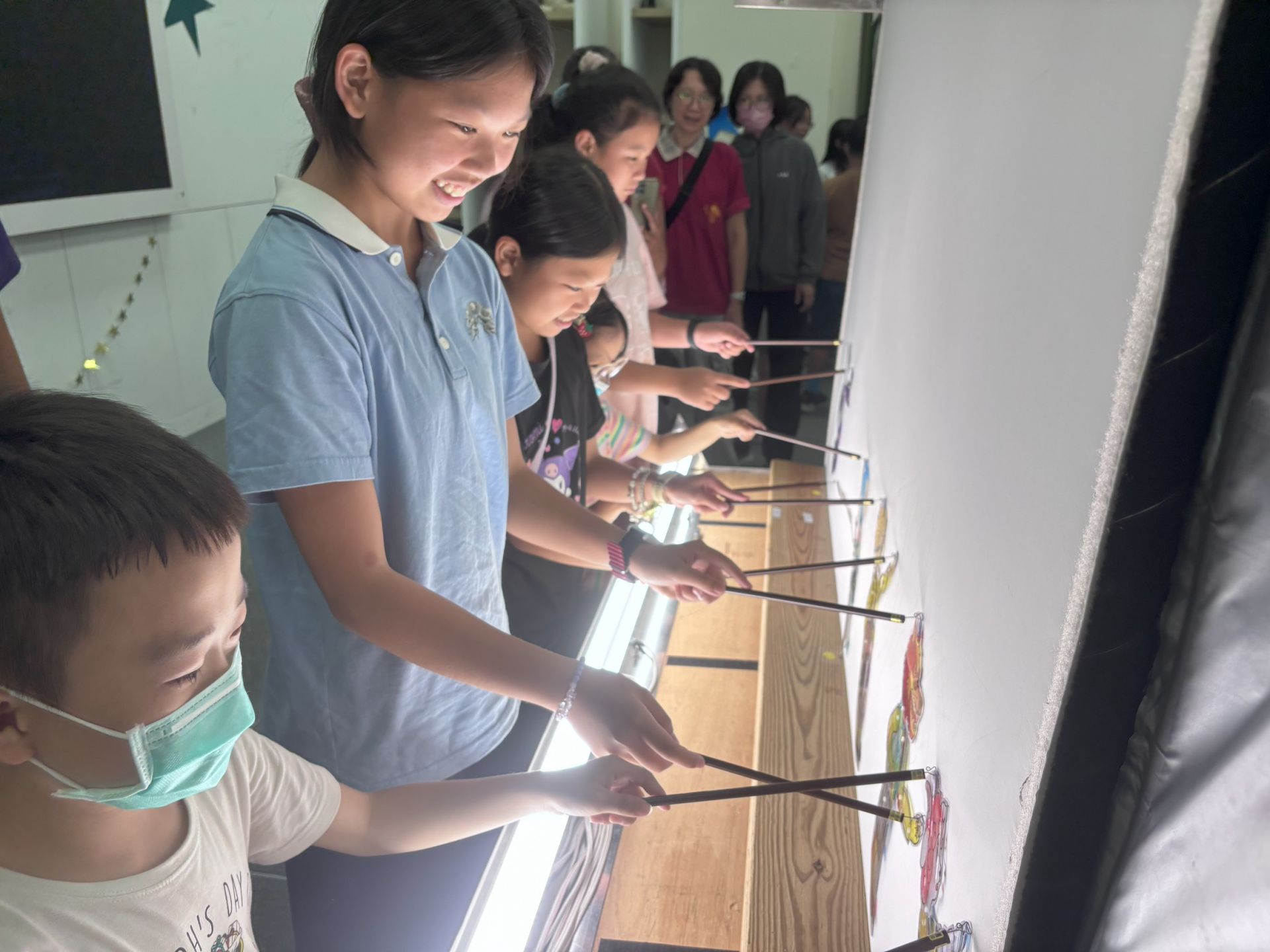 圖說:家扶兒忙著操作皮影戲 玩得不亦樂乎