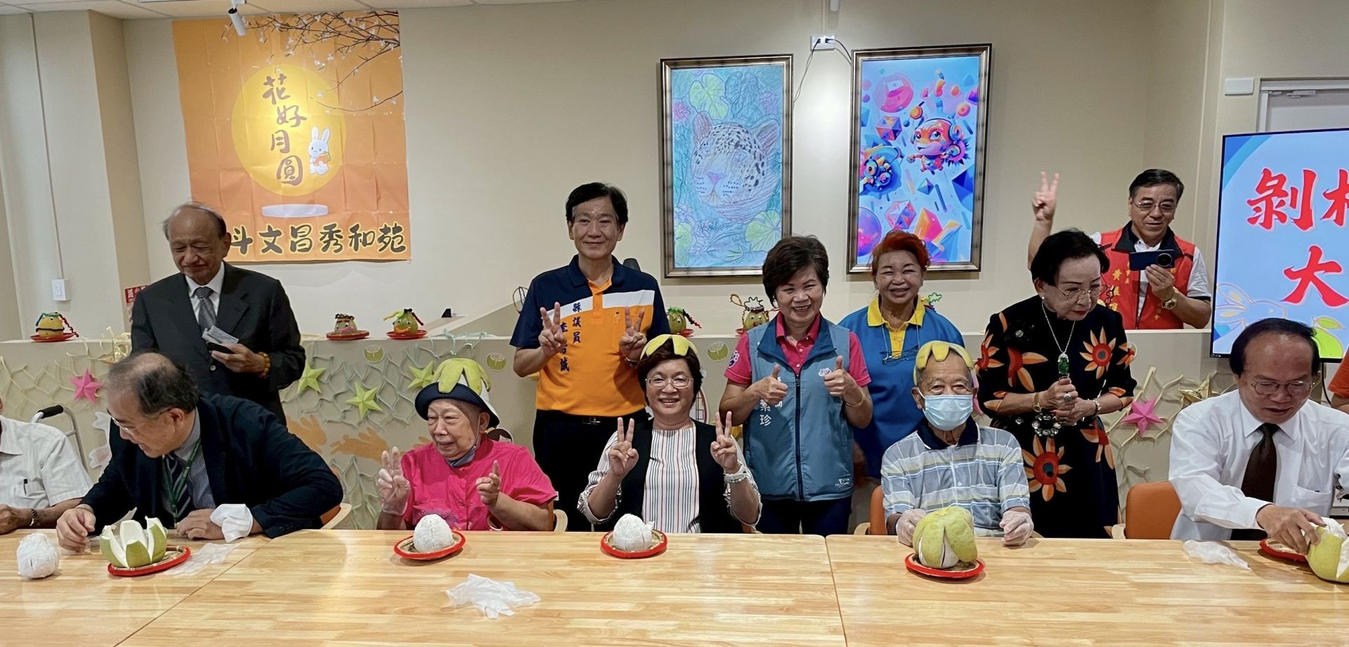圖說:北斗文加秀和苑日照中心啟用 王惠美開心的和長輩剝柚子比賽