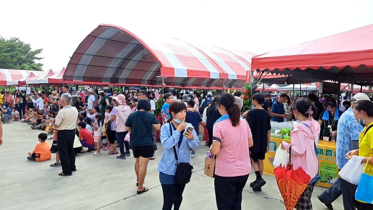 圖說:北斗鎮農會香菜總動芫活動,民眾預著秋老虎艷陽湧入會場