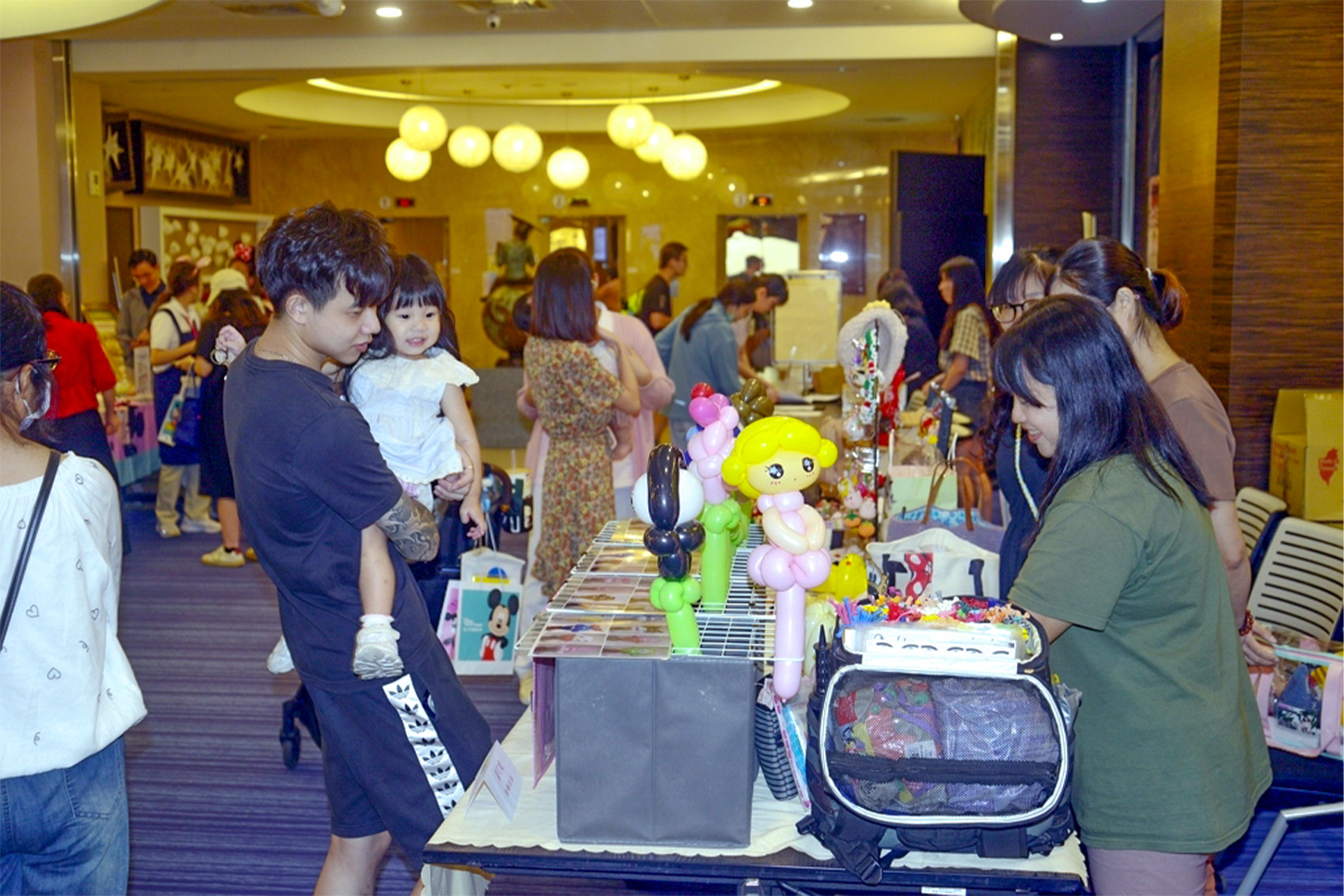圖說:新手父母帶著孩子參加護理之家周年慶 開心的逛婦幼市集