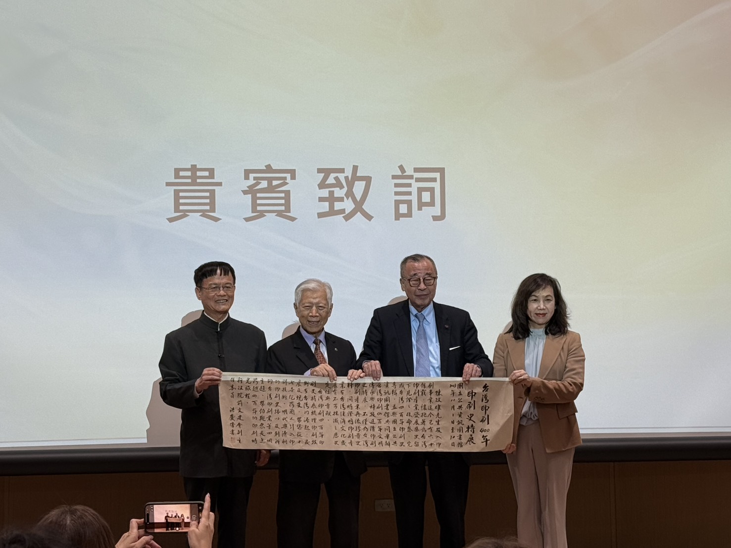 台灣印刷400年特展登場!興台印刷迎80週年,貴賓出席,共襄盛舉。(左:文建會前副主任委慶峰主委、左二:興台陳董事長、右二:前總統府是在廖了以、右一:國立公共資訊館馬湘萍館長)(圖/記者 拍攝)