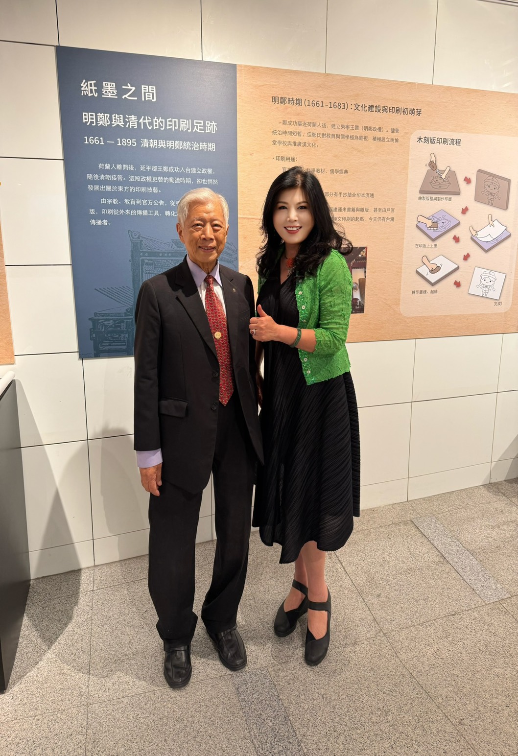 台灣印刷400年特展登場,台中市新聞工會理事長廖庭玉受邀出席,與興台集團董事長合照。(圖/記者 拍攝)