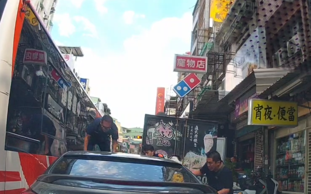 員警追捕詐欺嫌犯跳上對方車頂踹破擋風玻璃。翻攝畫面