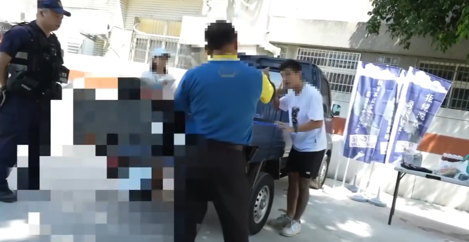 家長到學校宣傳反霸凌,警方前往了解。翻攝畫面