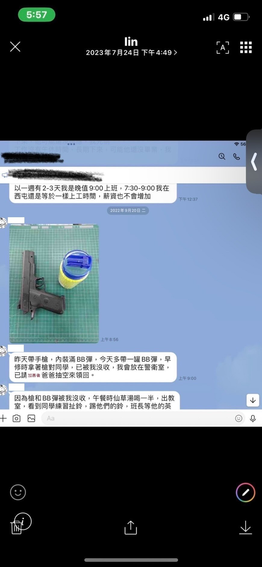 家長並指控,這名學生不只會毆打同學,甚至還曾攜帶BB槍到校、對代課老師進行公然攻擊與恐嚇。「這早已不是單純的霸凌,而是校方長期縱容下的連環暴力事件。我們想請問校長:一個孩子受傷是個案,那這麼多孩子呢?一個連老師都敢攻擊的學生,還要再有多少證據,學校才願意停止包庇、保護校園裡所有的師生?」