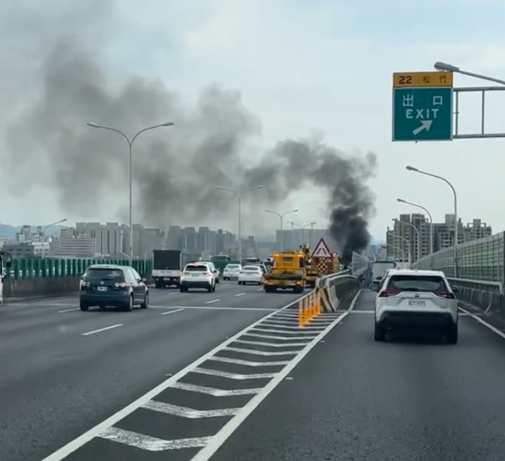 台74線松竹匝道口附近發生火燒車事故。翻攝畫面