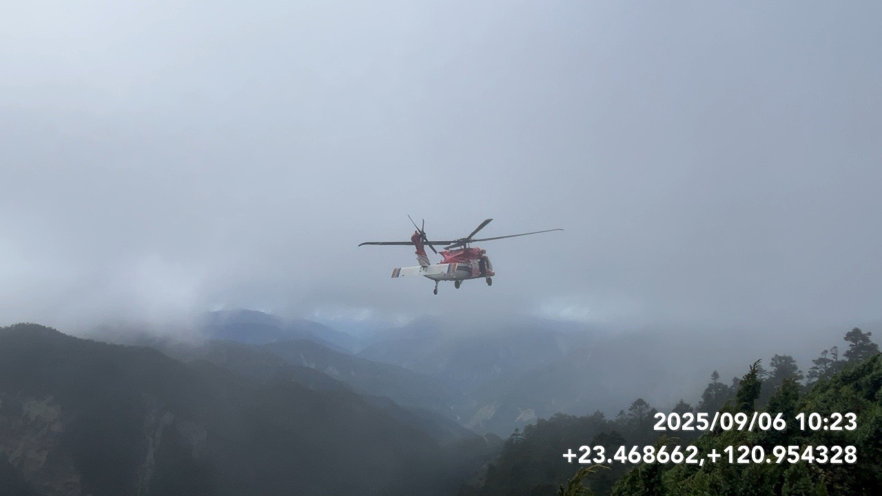 經評估後,消防局向空勤總隊申請直昇機吊掛。直昇機於9時44分自清泉崗機場起飛,10時23分抵達事故現場,雖然山上風大又有些許低雲,但在內政部空勤總隊機組員克服困難完成吊掛,並於10時40分降落消防署訓練中心,隨即由竹山消防分隊救護車後送至竹山秀傳醫院救治。南投縣政府消防局提醒,夏季山區氣候多變,山徑溼滑,登山民眾務必做好行前準備,並隨時注意天氣與路況,以降低山域意外發生的風險。