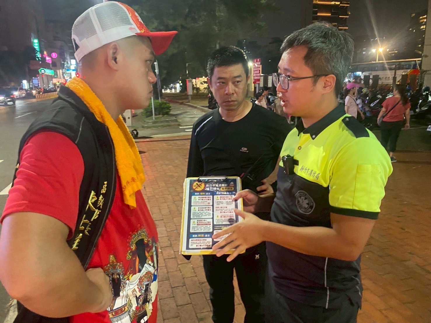 新竹市代理市長邱臣遠指出,為確保民眾慶祝節慶及寺廟辦理宗教慶典活動期間遵守爆竹煙火管制措施,市府已將上述管制措施公告、管制區域圖及宣導圖卡函送竹市各寺廟及32個高人口密集社區、43處古蹟,並透過里政系統加強宣導,民政處辦理相關宗教慶典活動及警察局受理寺廟申請宗教慶典活動時,由消防局派員說明管制措施,務必讓寺廟充分了解各項規定,保障慶典活動公共安全。