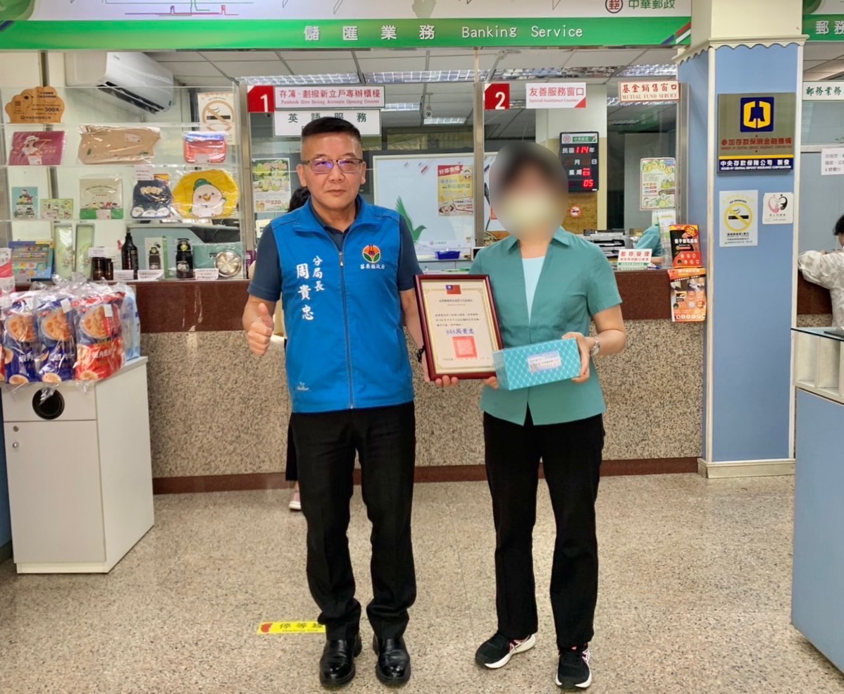 通霄分局長周貴忠為感謝金融機構積極協助,11日頒發感謝獎狀予山脚郵局行員,肯定與警方即時合作,共同守護民眾財產安全。警方呼籲,詐騙集團常以「高額獎勵」、「投資理財」等手法欺騙,提醒民眾切勿輕信不明廣告或訊息,若遇大額提款或轉帳,應再三確認,以免財產受損。