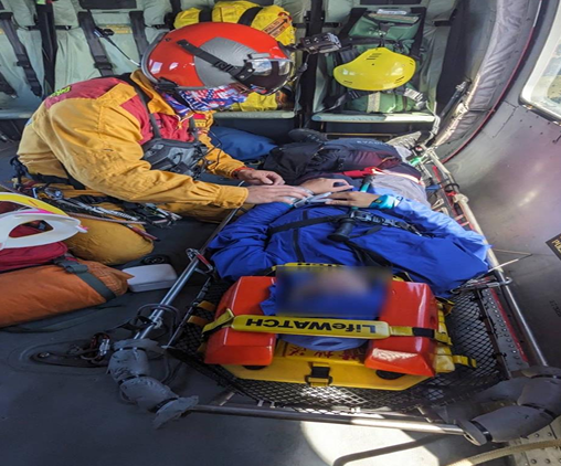 直升機於9時56分花蓮機場起飛,定向目標區10時12分南湖山屋前方空地落地,病患由特搜隊員使用擔架搬運上機,10時21分起飛,並由特搜員協助病患供氧與血氧檢測,隨即定向德興棒球場10時40分落地,病患由花蓮縣消防局安排救護車轉診救醫。