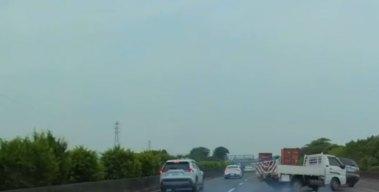 國道小貨車追撞前車後又失控撞擊右側休旅車。翻攝畫面