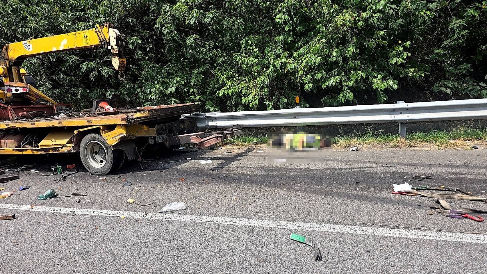 國道3號南下茄冬路段車禍1人倒臥路旁。翻攝畫面