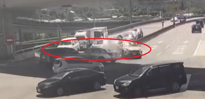 新店區中央路、環河路口發生自小客車看錯號誌闖紅燈,造成3車相撞事故(紅圈處)。翻攝畫面