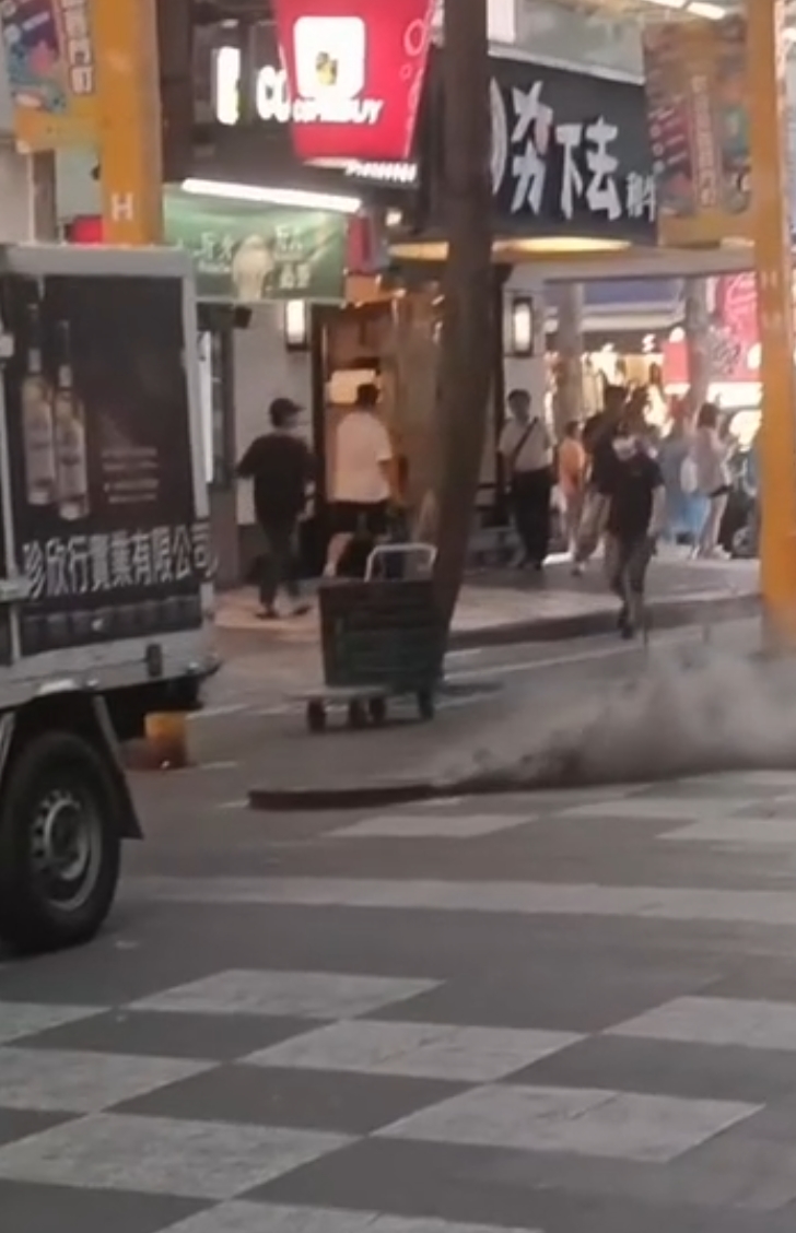 萬華街頭驚見「黑煙人孔」 漢中街突冒濃煙嚇壞路人.(圖/翻攝 LINE群)