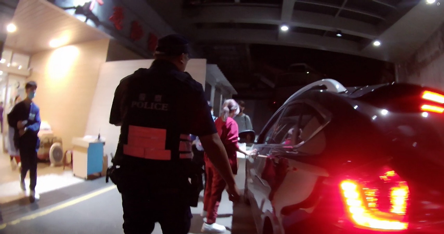 警車開道將被蛇咬的婦人送醫。翻攝畫面