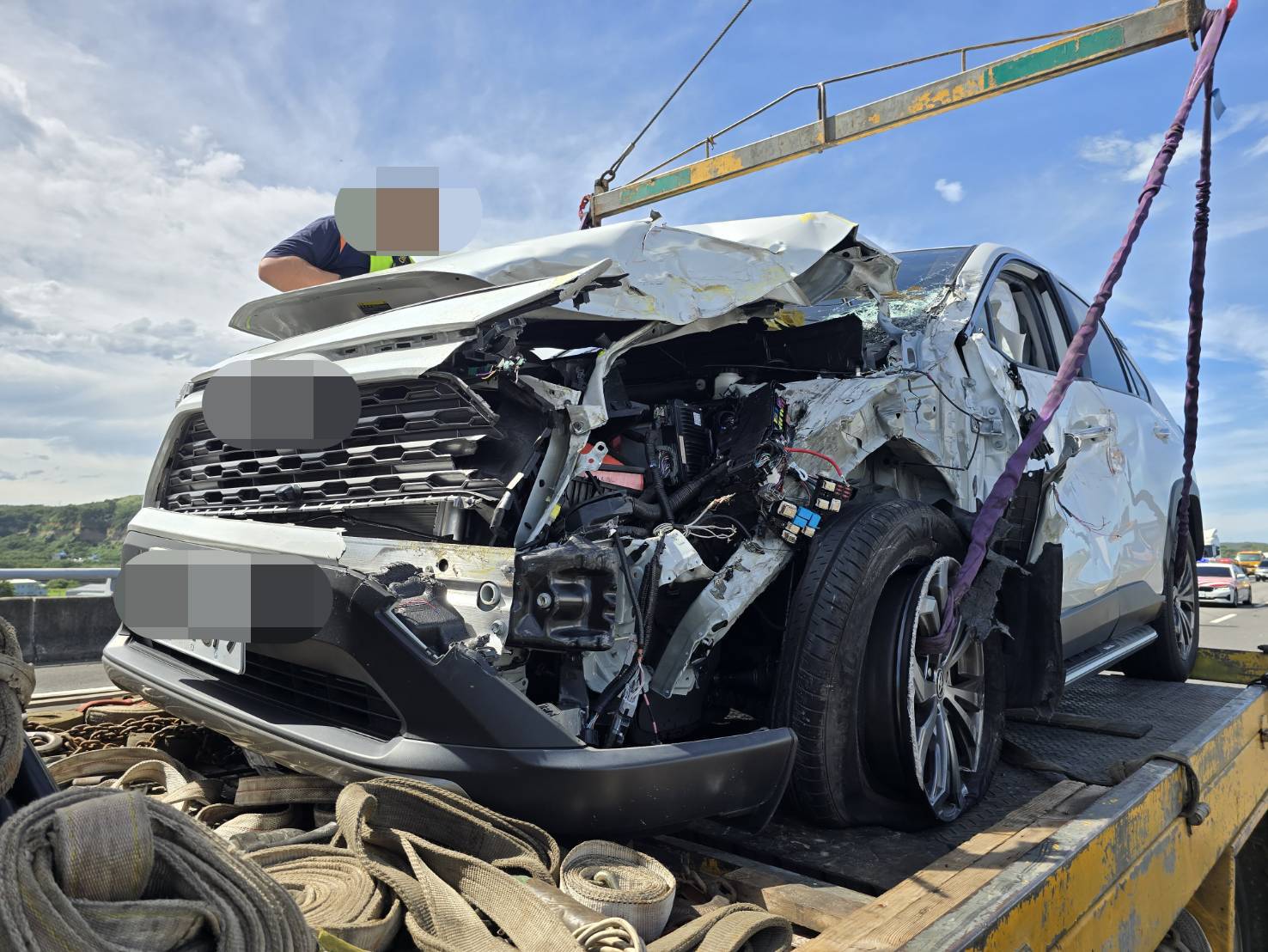 休旅車車頭撞爛。翻攝畫面