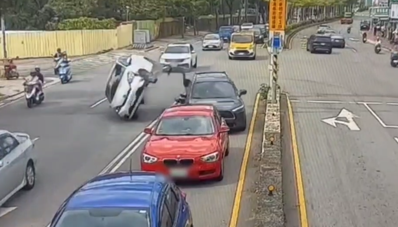 桃園八德服用安眠藥女子駕車追撞前方車輛翻覆。翻攝畫面