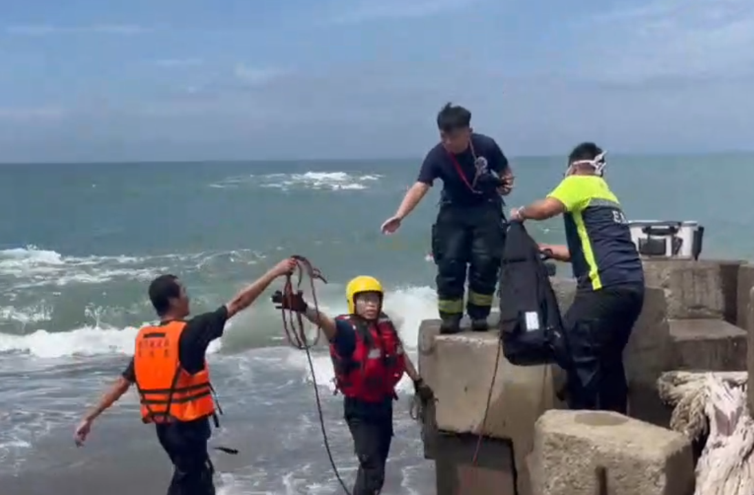 因受地形與浪勢影響,救援船艇無法安全靠近,消防人員立即研判情勢,決定同時啟用「遙控救生圈」進行救援,分將救生衣送抵受困者位置,隨後透過遙控操作順利將男子安全帶回岸上。經檢視,男子並無受傷情況,也不需送醫,消防人員隨後於現場實施海域安全宣導,提醒其避免再度發生危險,並於任務結束後收整裝備返隊。