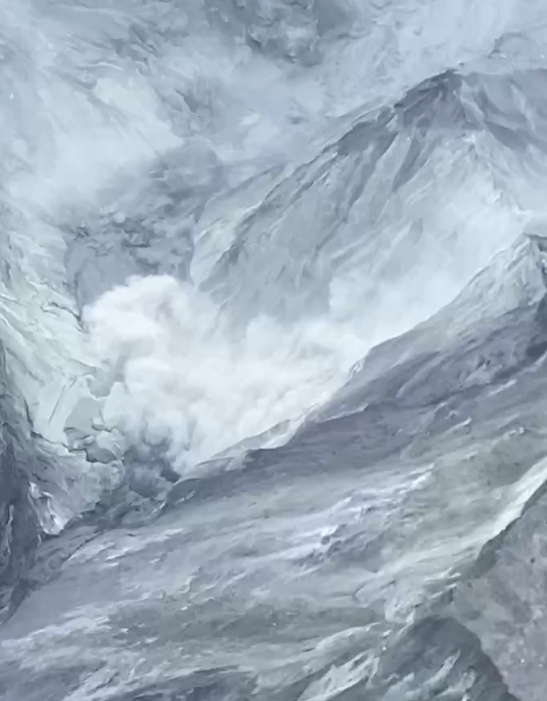 溪谷中冒出濃厚煙塵。翻攝畫面