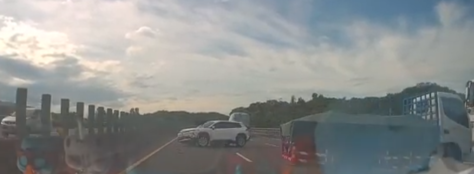 【賴傳媒、記者爆料網/周庭慶/苗栗報導】國道3號苗栗苑裡路段24日發生一起驚險車禍,1輛休旅車興輛小貨車擦撞後失控打橫,後方1輛貨車疑似為了閃躲衝向右邊,差點與外線車道1輛大貨車相撞釀成連環車禍。行車紀錄器畫面PO網引起網友熱議留言:「
