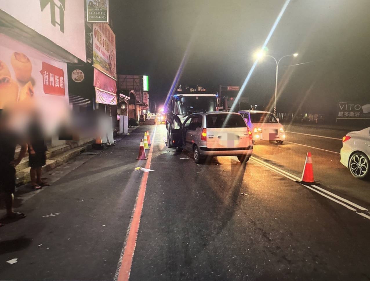 事故發生在昨(26)日晚間10點40分,地點位於南州鄉勝利路1-1號。當時一名26歲車姓男子駕駛自小客車,疑似因下班過於疲憊打瞌睡,通過路口後闖紅燈失控逆向滑行,先撞上前方吳姓男子駕駛的大貨車左後車尾,再波及後方陳姓男子駕駛的大貨車車頭。幸好三方駕駛皆無受傷,現場酒測值均為零。