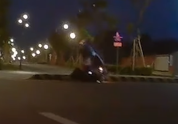 【賴傳媒、記者爆料網/雲林報導】民眾PO網一段影片,內容是昨(1)日18時15分許,內容係一部機車於虎尾高鐵特區建成路騎在中央分隔島人行道上,影片最後因該部機車要騎過人行道末端緣石時因高低差不慎自摔。影片引起網友熱議留言:「愛騎嘛繼續騎啊」、「哇靠!翻的這麼順」、「有違青年,上人行道立馬就睡」、「這邊表演沒有打賞喔」