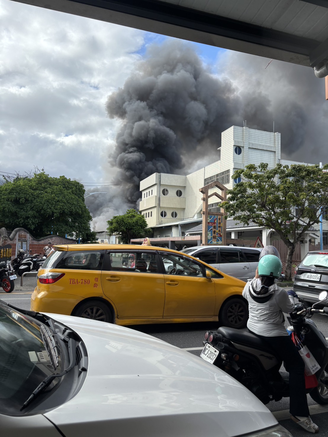 花蓮吉安鄉吉興一街鐵皮工廠火警濃煙沖天。翻攝畫面