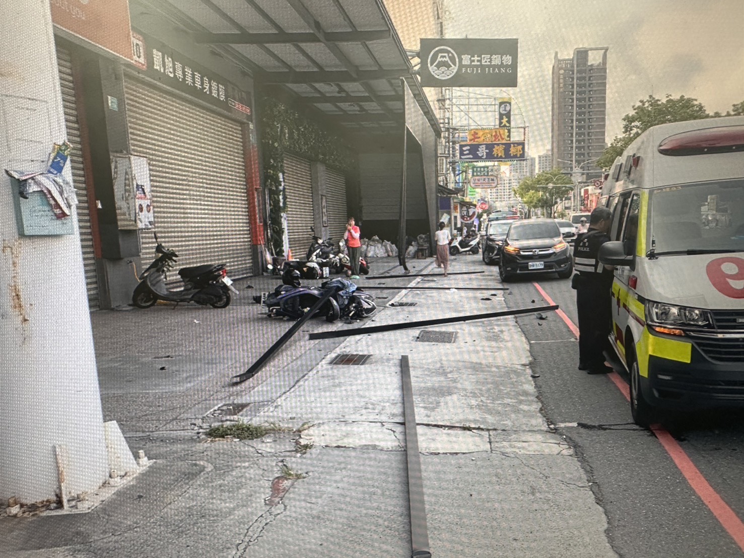 ▲現場還有停在一旁的機車被波及(圖/記者王俊勝 翻攝)