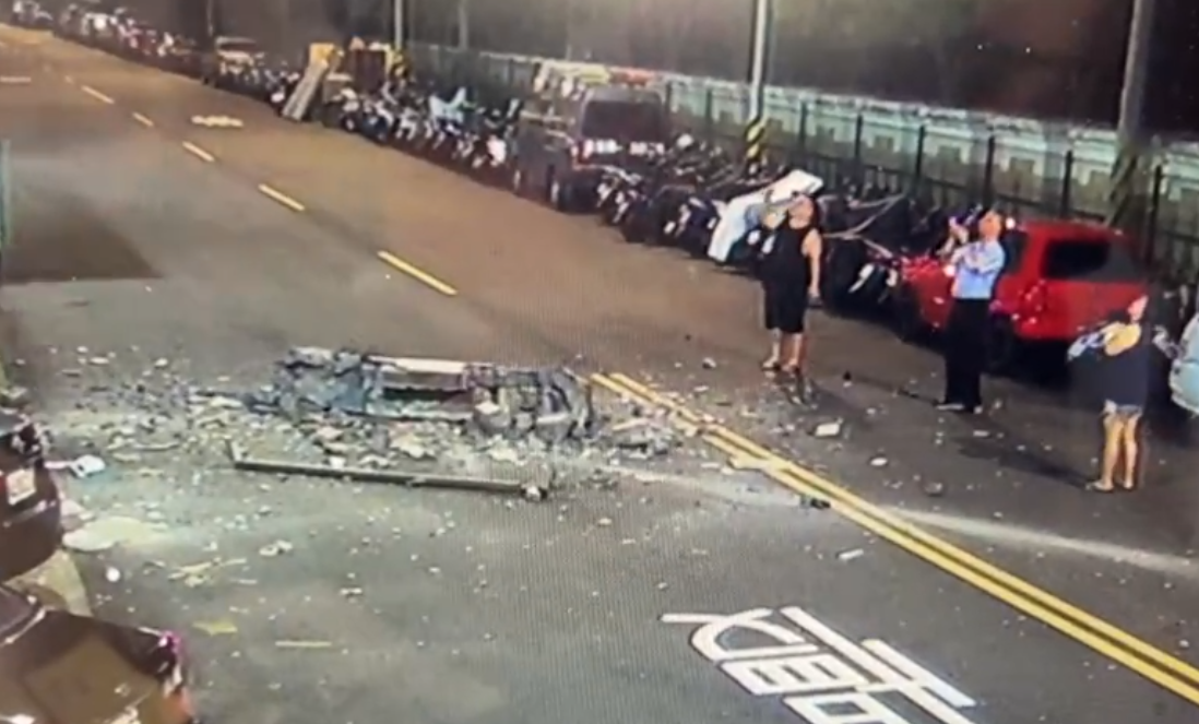 台中太平社區大樓住戶陽台半夜突然崩落砸中路面嚇嚇住戶。翻攝畫面