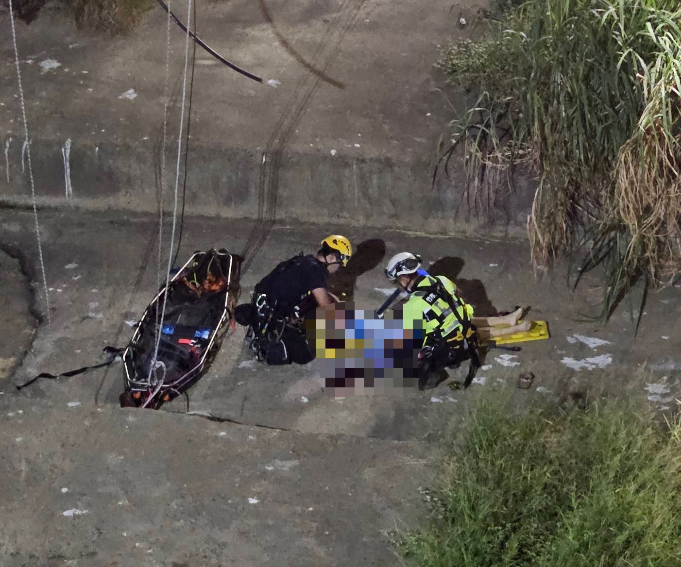消防隊員到場後用吊車及繩索等器材,將該名年約歲的婦人從高度大約9公尺的橋下抬至路面,發現婦人已OHCA,隨即由救護車送醫,後續由警方調查處理。